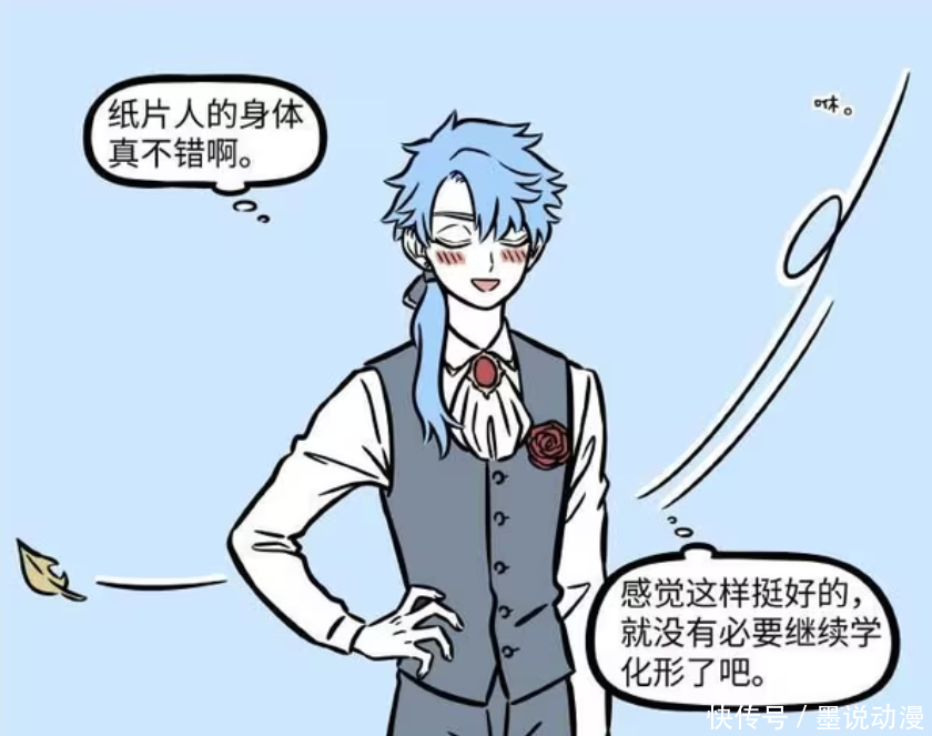 《非人哉》漫画版中,何理跟着九月学习化形是有原因,它想要融入社会。可是不管化妆术多精湛,都还是被误以为是狗。为了更好融入现代社会,何理才会选择学习化形术,不过变成纸片人之后,发现有诸多便利,但因为太轻,也有弊端。